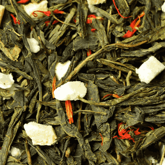 Чай зеленый китайский, кусочки грейпфрута, лепестки сафлора, аромат грейпфрута.