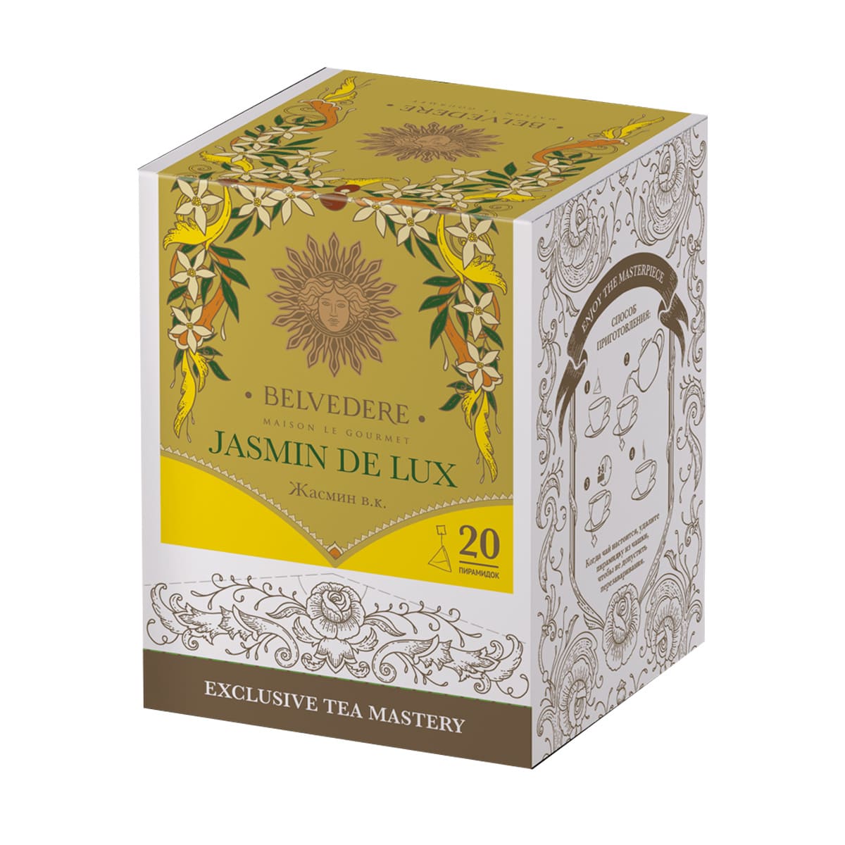 Главная / Каталог / Чай / Чай Belvedere / Чай пакетированный Belvedere / Чай в пирамидках / Чай пакетированный в пирамидках Belvedere Жасмин 3х20 шт