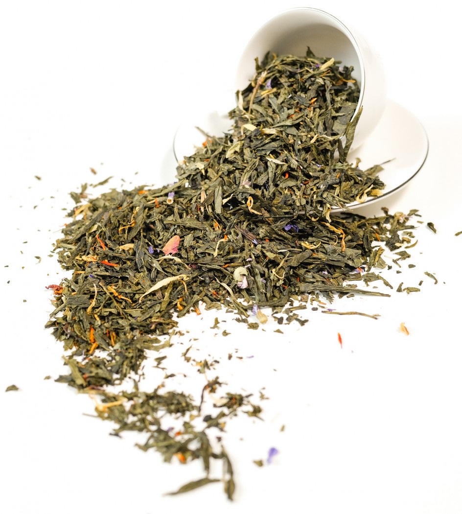 Состав: чай зелёный байховый китайский Сенча, цветы мальвы, лепестки василька, подсолнечник, бутоны роз, нат. аромат. «Цветочный». Купаж китайского чая с ярким цветочным ароматом, густым вкусом и фруктовым, солнечным послевкусием. (1 г/100 мл/75°С/2-3 мин) Чай обладает тонизирующим эффектом, имеет в составе большое количество микроэлементов и йода. Идеально подходит для десертов, особенно фруктовых. Имеет легкий вкус и сладкий аромат. При заваривании нежные цветы раскрываются, а настой приобретает изумрудный оттенок.